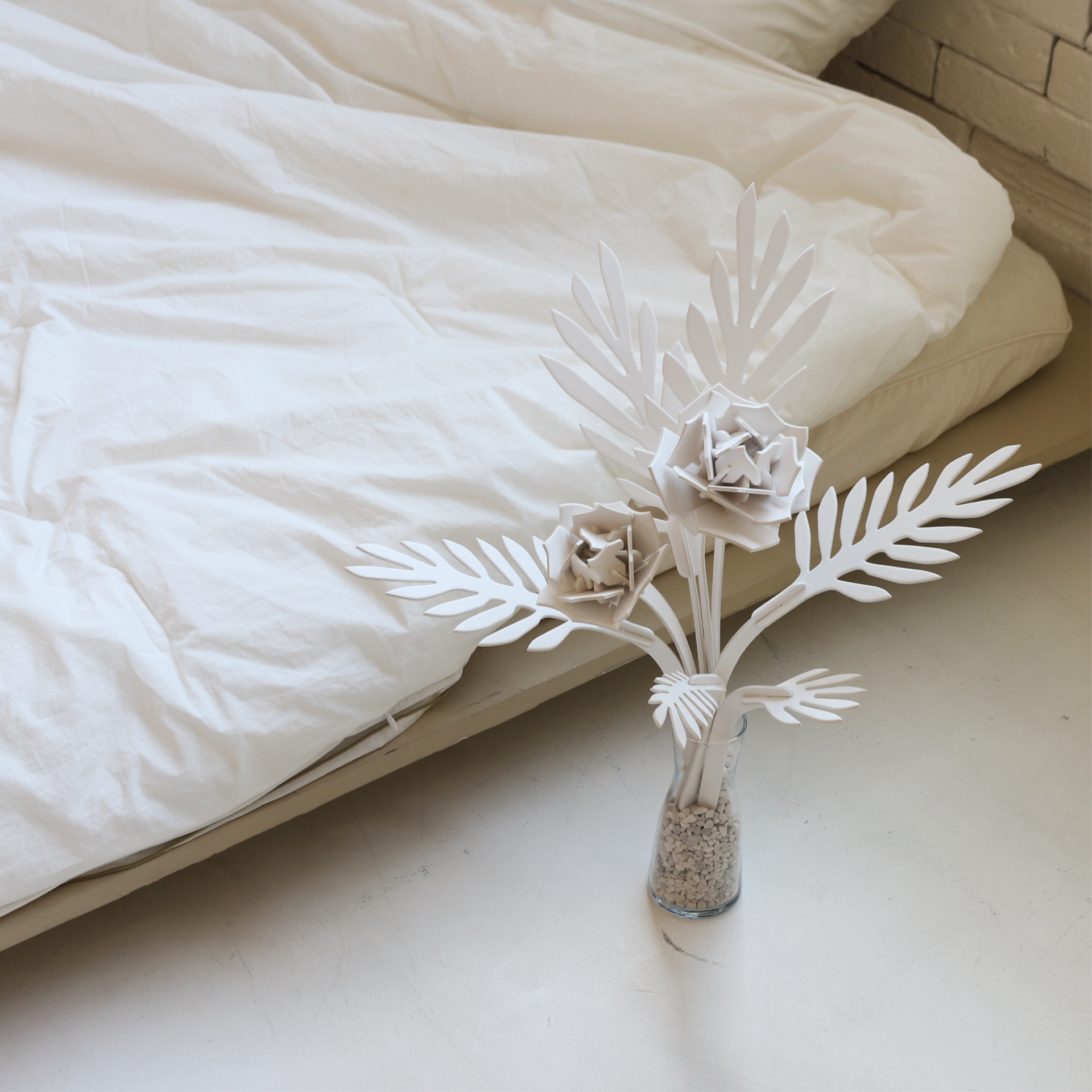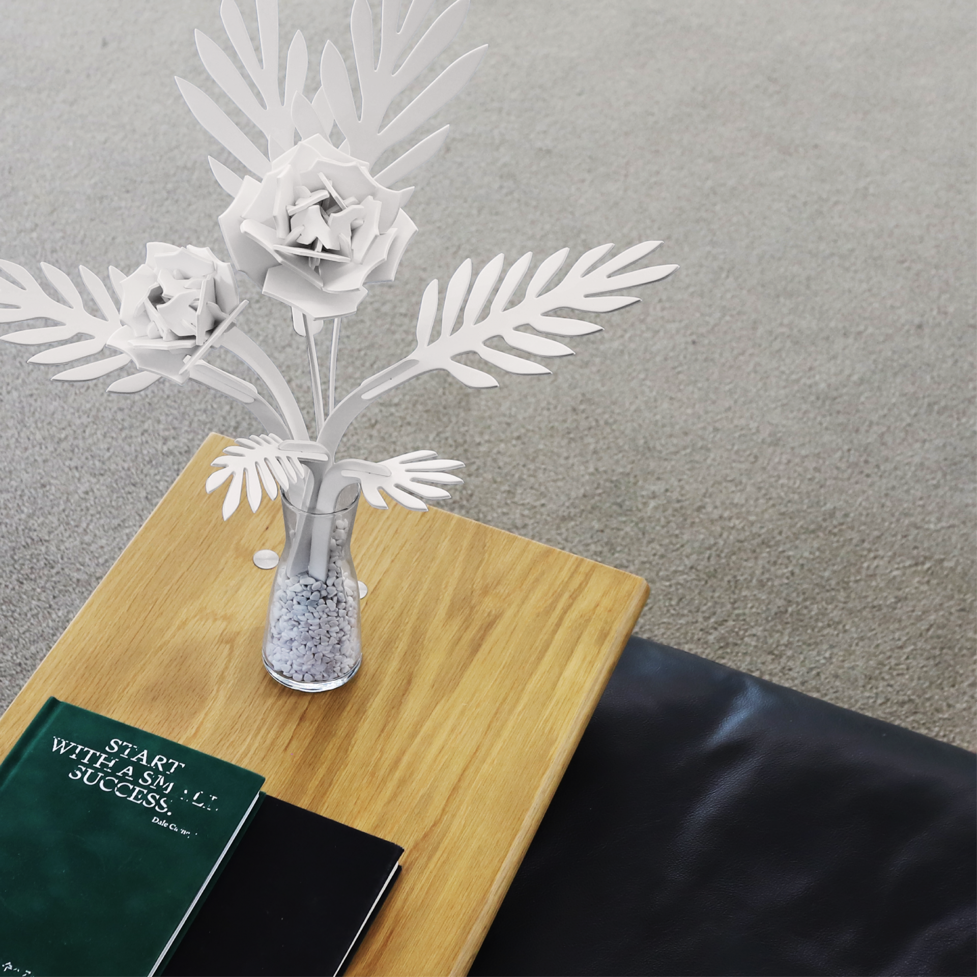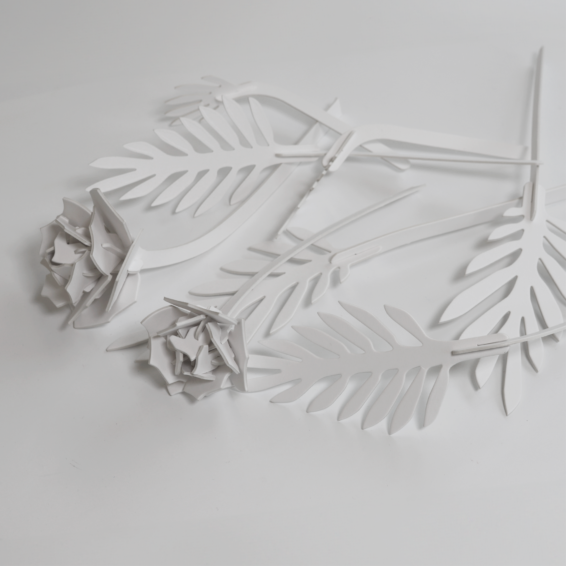 💕총 2송이의 장미와 6개의 테이블야자잎이 포함되어 있습니다.